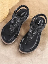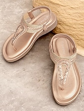More information about Women's Rhinestone T-Strap Sandals with Braided Detailing, Comfortable Flat Summer Shoes for Casual and Beach Wear
