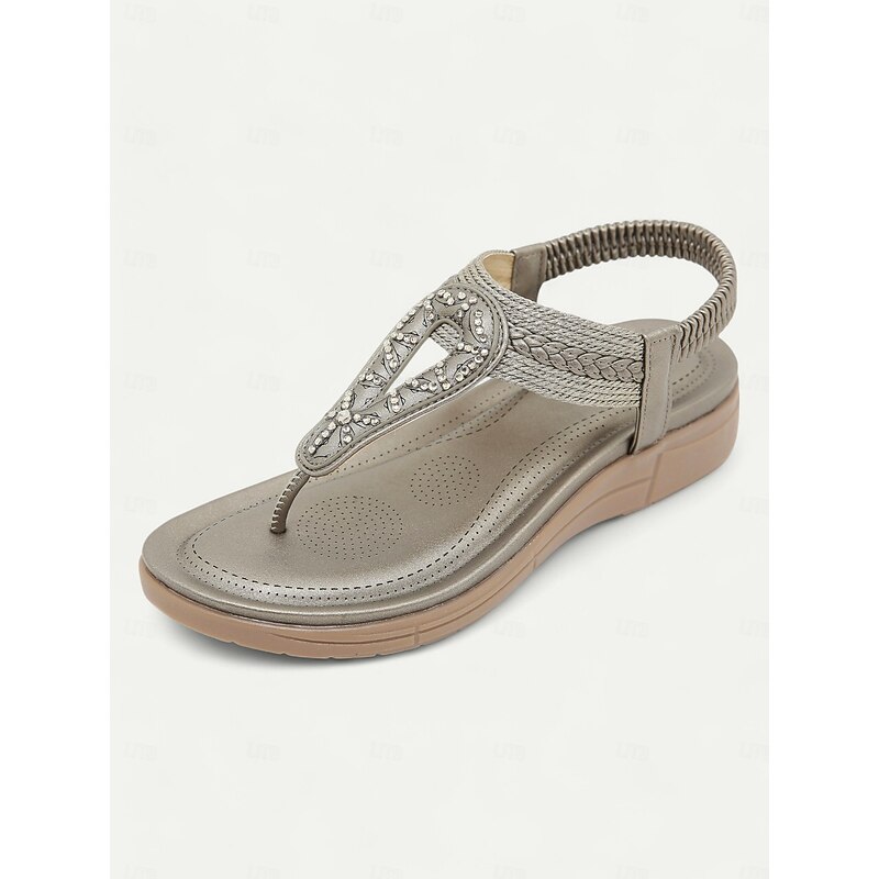 Women's Rhinestone T-Strap Sandals with Braided Detailing, Comfortable Flat Summer Shoes for Casual and Beach Wear 20