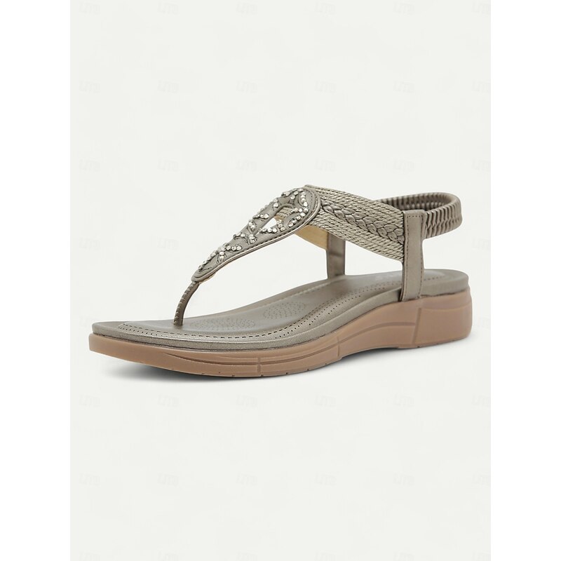 Women's Rhinestone T-Strap Sandals with Braided Detailing, Comfortable Flat Summer Shoes for Casual and Beach Wear 25