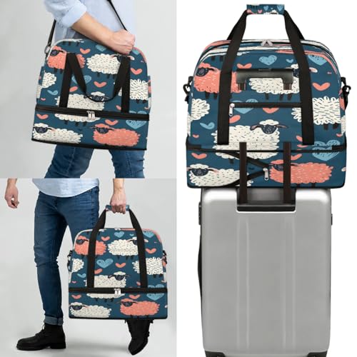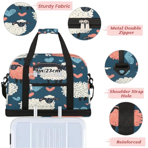 Travel Duffel Bags Cute Animal Sheep Foldable Weekender Bags for Women with Shoes Compartment Waterproof & Tear Resistant Carry on Overnight Luggage Duffel Bag Shoulder Sports Tote Bag 5