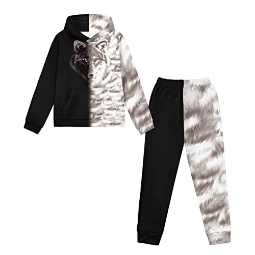 HOT ! Xhuibop Wolf Boys 2 Piece Sweatsuits Hoodie and Jogger Pants for Kids Tracksuits for Girls Size 10-12 Long Sleeve Jogging Pants Matching Sets Sweatpants and Sweatshirt