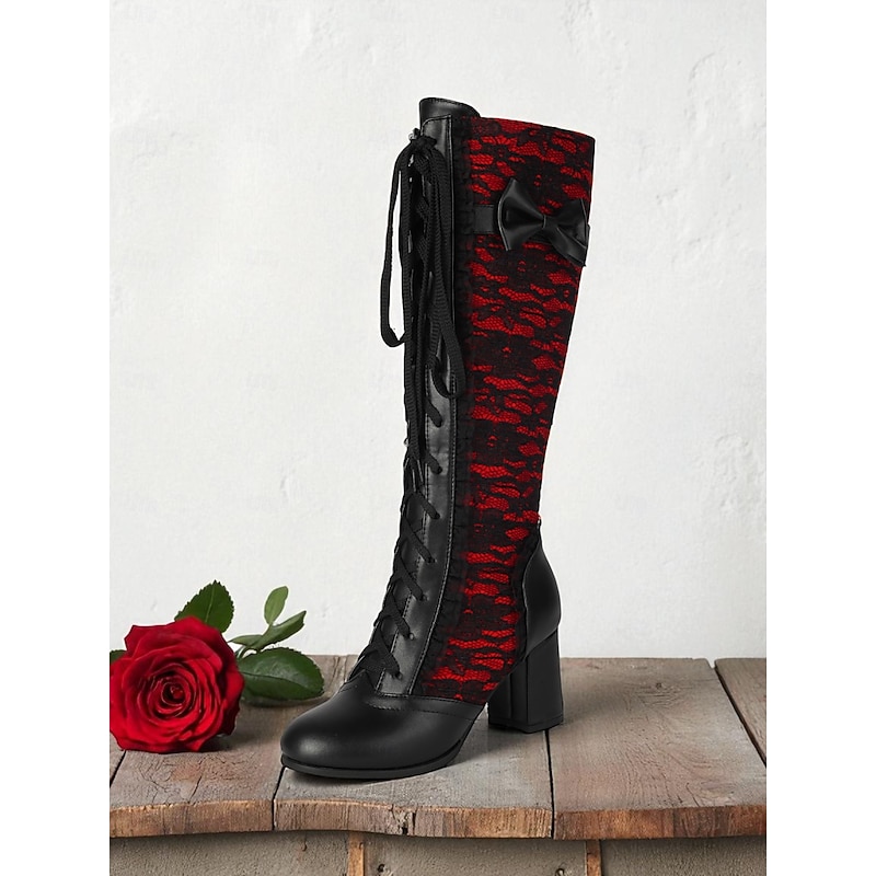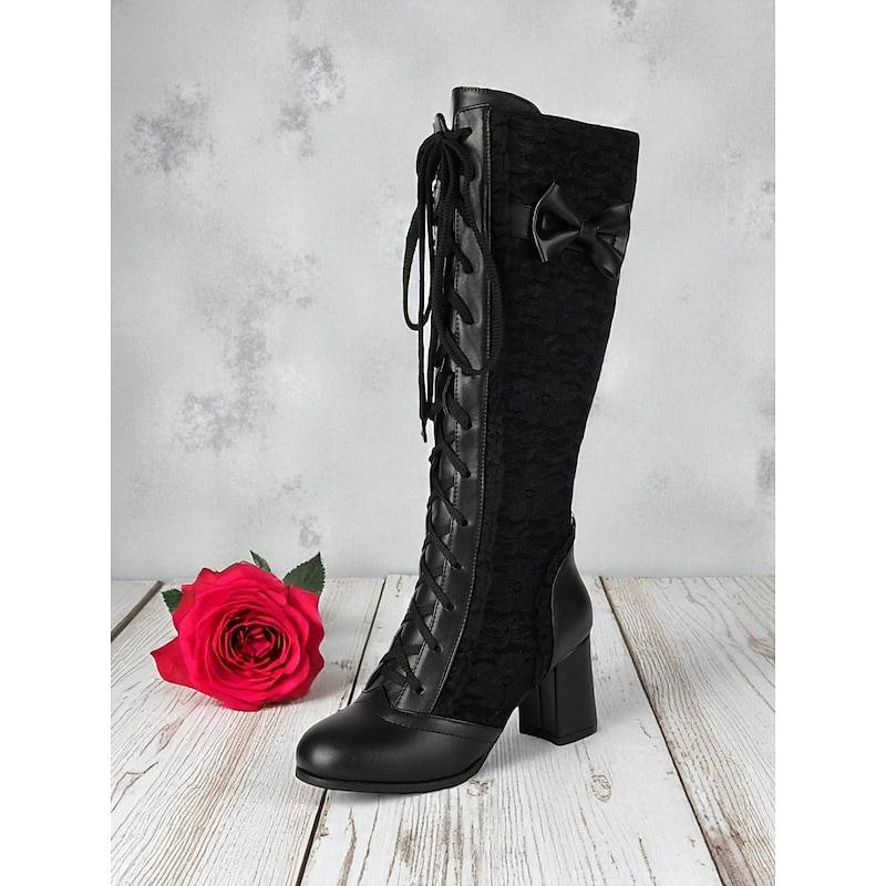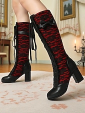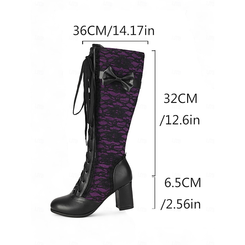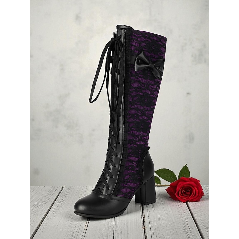 $64.99 - Women's Black and Purple Lace Knee High Boots with Chunky Heel and Bow Detail, 1920s Gothic Victorian Style Fashion Boots for Cosplay, Halloween & Party Wear 2025. Shop for cheap 1920s online? Buy at lightinthebox.com on sale today!