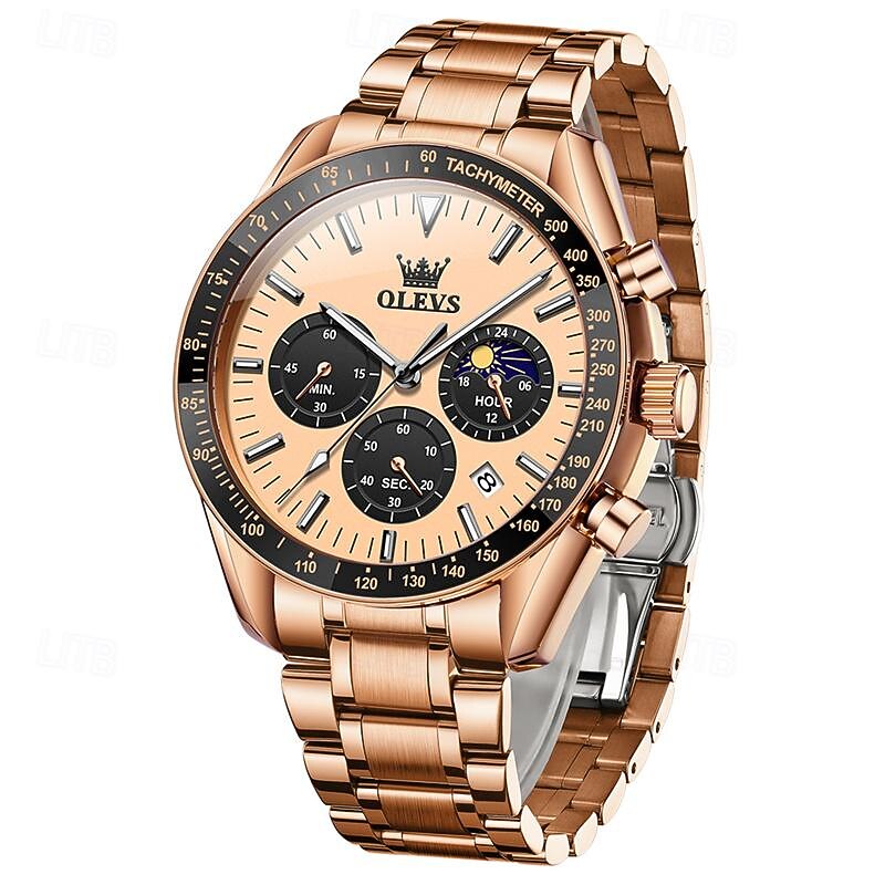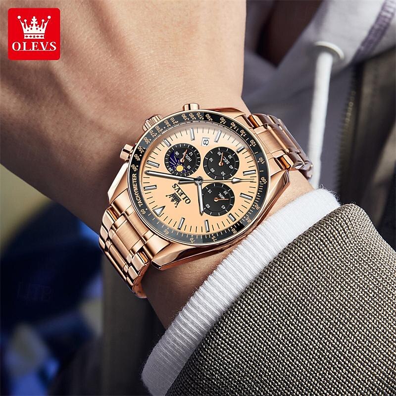 $29.99 - New Olevs Olevs Fashion Trend Stainless Steel Band Men'S Business Watch Calendar Luminous Moon Phase Simple Leisure Quartz Watch Waterproof Sports Men'S Wristwatch 2025. Shop for cheap Quartz Watches online? Buy at lightinthebox.com on sale today!