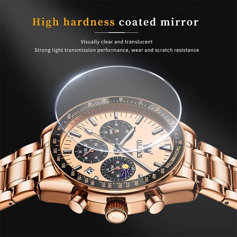 New Olevs Olevs Fashion Trend Stainless Steel Band Men'S Business Watch Calendar Luminous Moon Phase Simple Leisure Quartz Watch Waterproof Sports Men'S Wristwatch 3