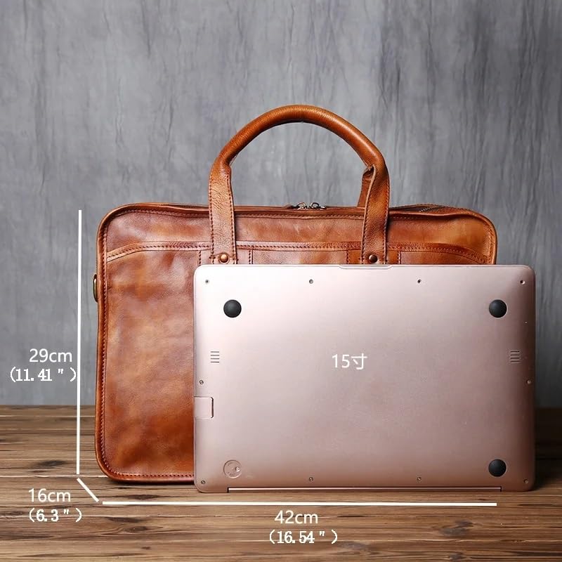 JSEIAJB Retro Men's Briefcase Cowhide Handbag Travel Bag Handmade Leather Laptop Business Bag Shoulder Crossbody Bag 6