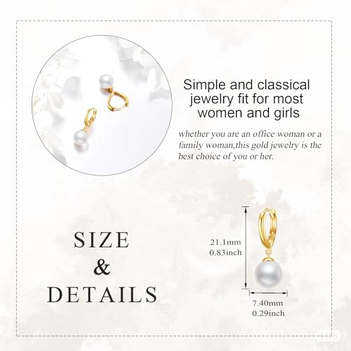 • ♥Pearl Earings is made of 41.7% pure gold (10k real gold, no only plated-gold). It is high-quality and tarnish resistant, a hypoallergenic gold earrings for women.
