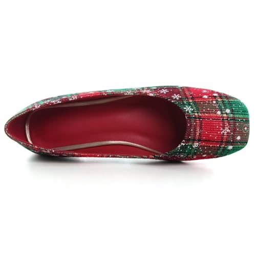 Women's Ballet Flats Plaid Christmas Red Dress Shoes for Women Party Dressy Casual Flats Comfortable Slip-on Sqaure Toe Walking Loafers 7
