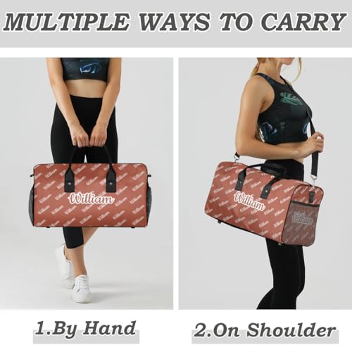 Custom Name Duffel Bag Personalized Sports Bag Dance Gym Bags Travel Overnight Carry-On Duffel Bag for Women Men Waterproof, Reddish Brown 5
