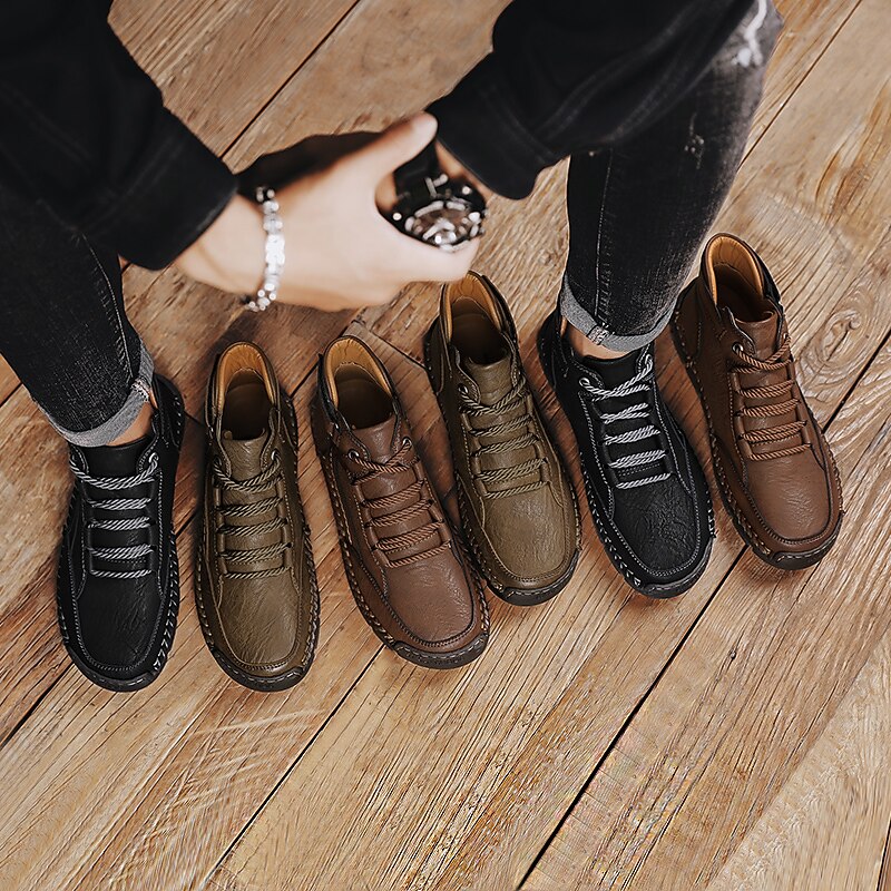 HOT ! Men's Brown Leather Ankle Boots – Handmade Stitching, Lace-Up Design, and Durable Non-Slip Sole for Outdoor and Casual Wear