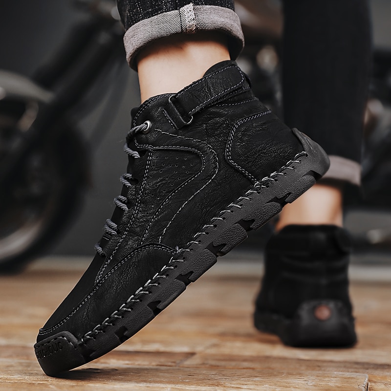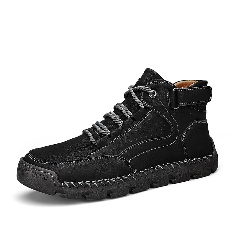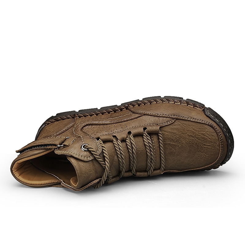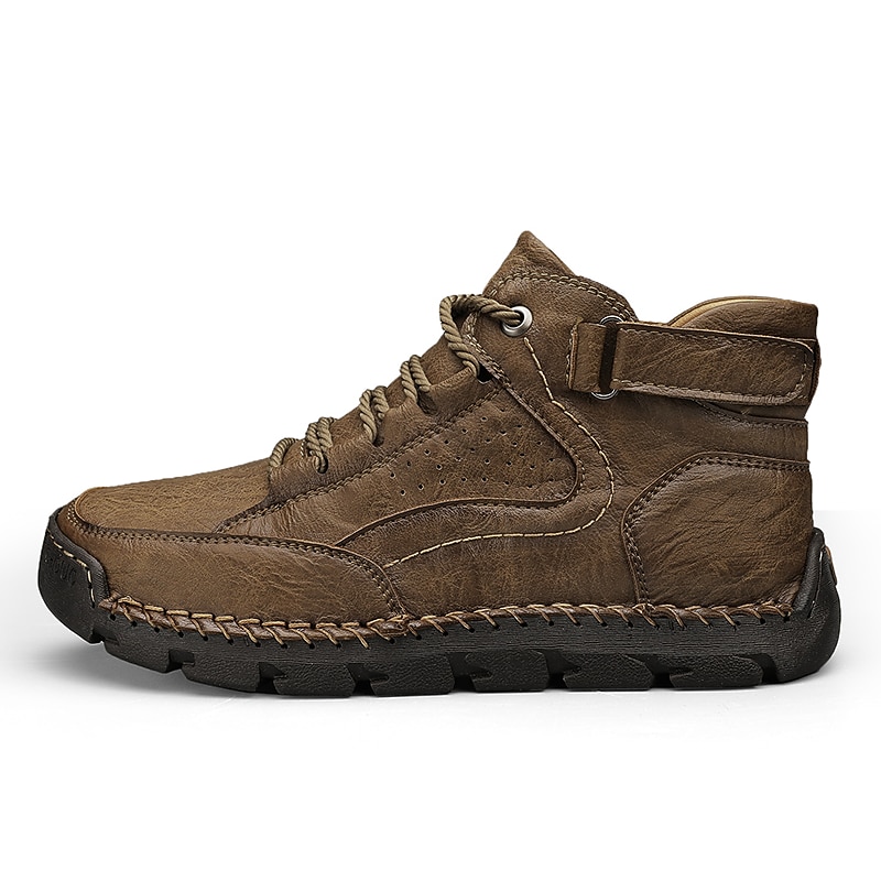 More information about Men's Brown Leather Ankle Boots – Handmade Stitching, Lace-Up Design, and Durable Non-Slip Sole for Outdoor and Casual Wear