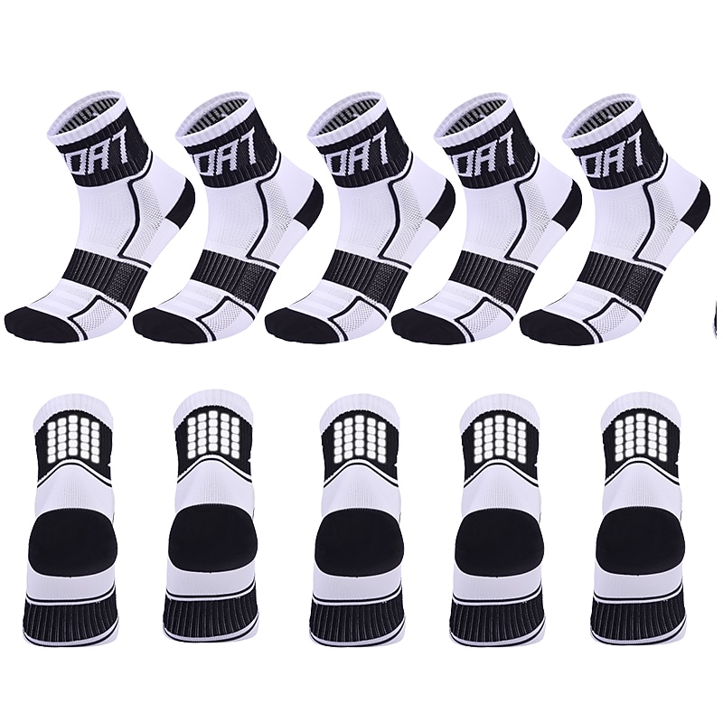 5 Pairs Compression Socks Ankle Socks Athletic Sports Socks Cycling Socks Women's Men's Cycling  Bike Bike Cycling Lightweight Breathable Quick Dry Fashion Nylon White Black Blue 17