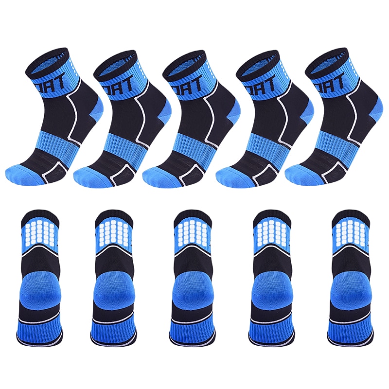 5 Pairs Compression Socks Ankle Socks Athletic Sports Socks Cycling Socks Women's Men's Cycling  Bike Bike Cycling Lightweight Breathable Quick Dry Fashion Nylon White Black Blue 2
