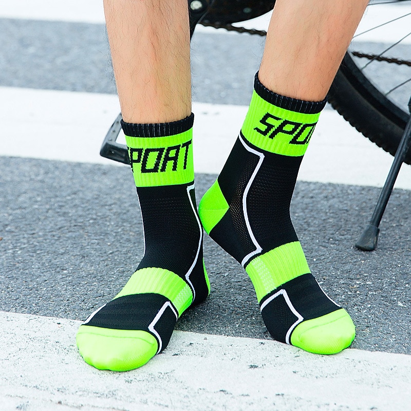 Highlights - New designed compression socks that are low cut and more convenient than knee high socks. - Premium quality stitching for running, working or cycling. - Easy to put on despite being compression socks. - Compression technology improves blood flow, increases speed and reaction time, and reduces energy expenditure. - Provides circulation support to fight fatigue. - Suitable for everyday use and enhances performance in various sports activities. - Provides arch support to promote blood circulation, prevent cramping, fatigue, and swelling. - Helps with pain relief from plantar fasciitis and foot injuries. - Aids in recovery after exercise. - Comfortable to wear with a fashionable look and various color options available. - Unisex socks with two size options for focused support and muscle fatigue relief. - Form fitting, lightweight, and breathable fabric for foot stability. - Suitable for both men and women. - Quick dry, anatomic design, moisture-wicking, lightweight, and fashionable pattern. - Suitable for mountain bike MTB and road bike cycling.
