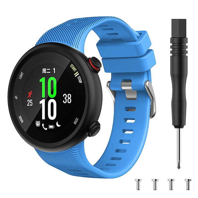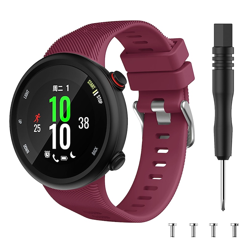 Highlights - Compatible with Garmin Forerunner 45/ Forerunner 45s only, making it a perfect replacement wrist band for your Garmin Watch. - Personalize your watch with this refined wrist band to add a unique touch to your style. - The adjustable secure wristband design ensures a perfect fit for most wrists, ranging from 5.5'' to 8.1'' (91mm+116mm). - Plenty of spots for size adjustment allow for a comfortable and secure fit. - The softness of the band is moderate, providing maximum comfort for all-day wear. - The compression molding ensures sturdiness and durability, making it suitable for any activity. - Easy and direct installation and removal make it convenient to switch wrist bands. - Delighted varied colors available to personalize your wristband according to your mood and outfits. - Included in the package are 1 x Colored Silicone Band, 1 x Screwdriver, and 4 x Spare Pins, providing everything you need for immediate use.