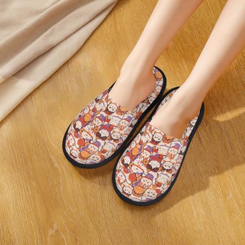 Maneki-Neko Cats Print Women'S Fuzzy Slip On Indoor Outdoor Winter House Slippers 6