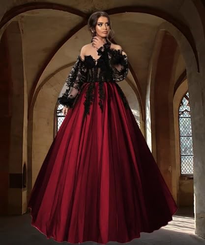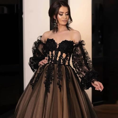 More information about Black Wedding Dresses for Bride Long Sleeve Bridal Gown with Train Gothic Off Shoulder Wedding Gown