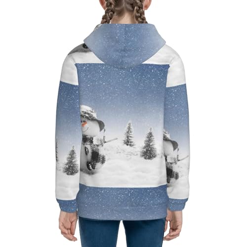 Snowman And Christmas Tree Kids Pullover Hoodies Boys Zip Up Sweatshirts Girls Athletic Clothes with Pocket 1