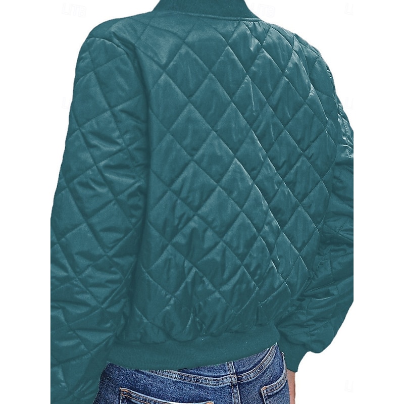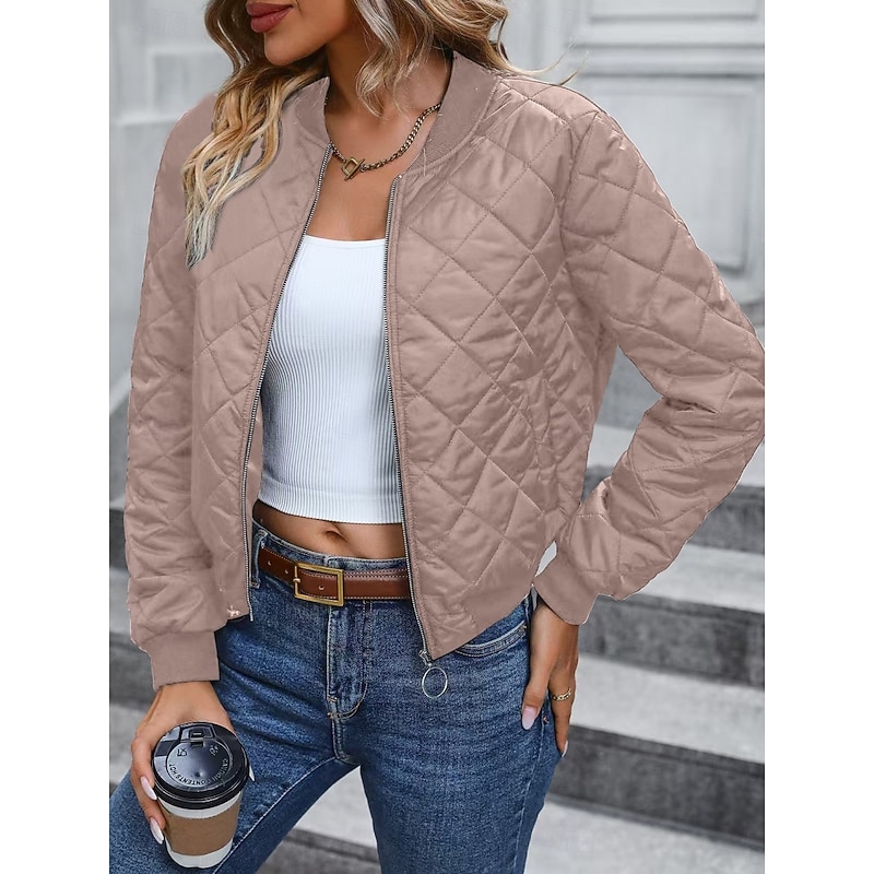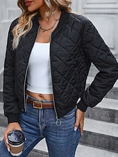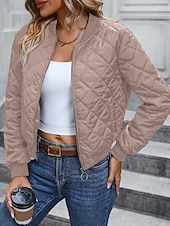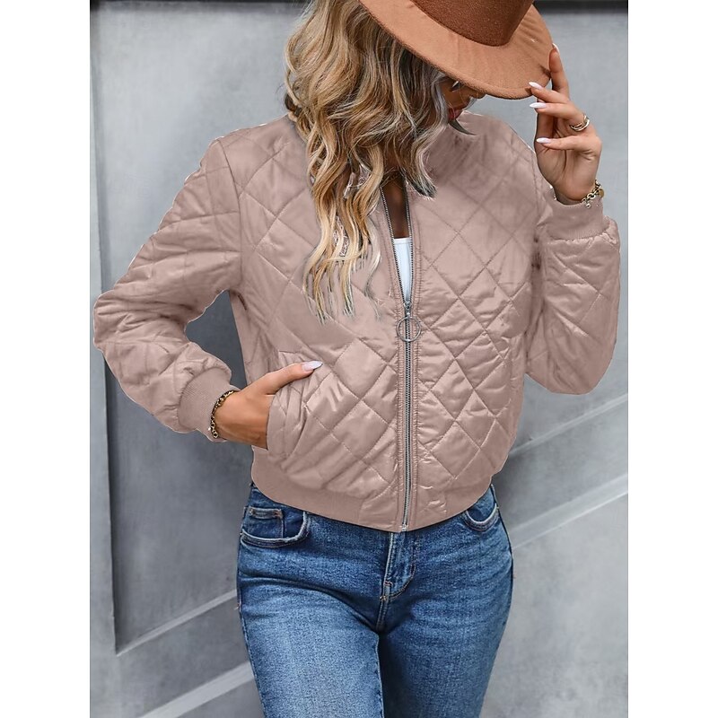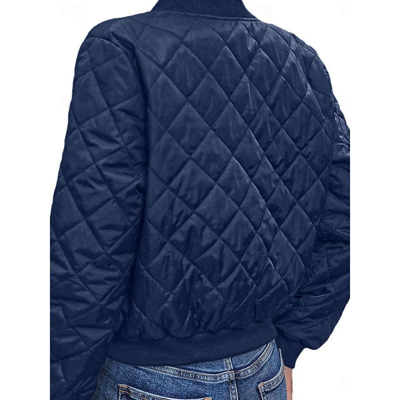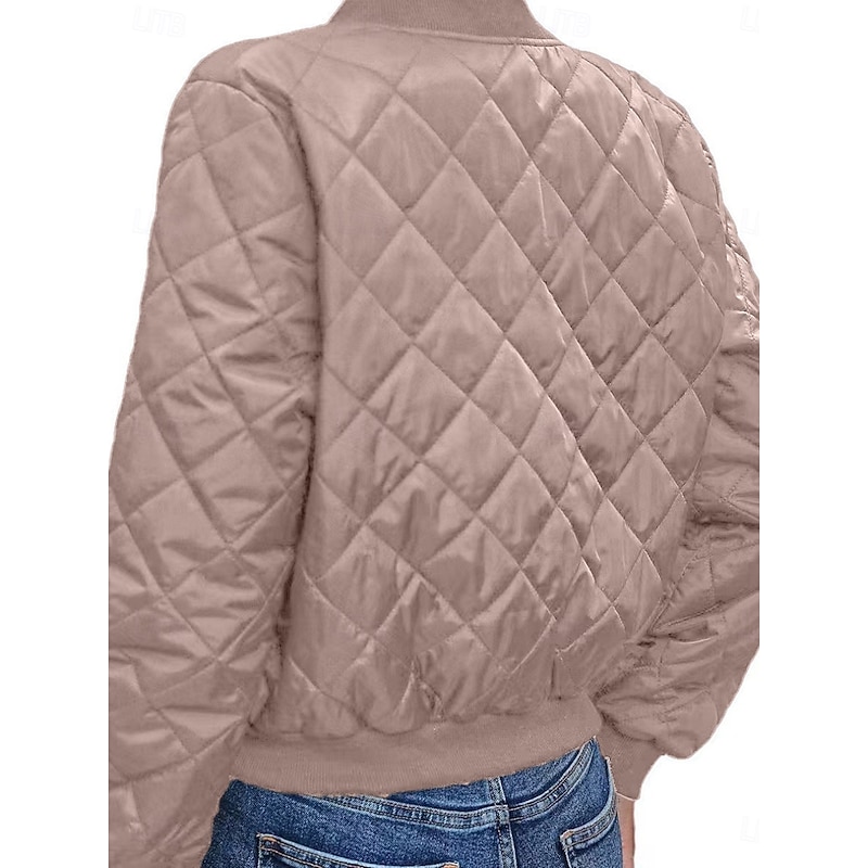 More information about Women's Bomber Jacket Casual Jacket Comfortable Breathable Zipper Pocket Casual Plain Vacation Street Casual Daily Wear Zipper Short Stand Collar Regular Fit Long Sleeve Outerwear Navy Black Pink
