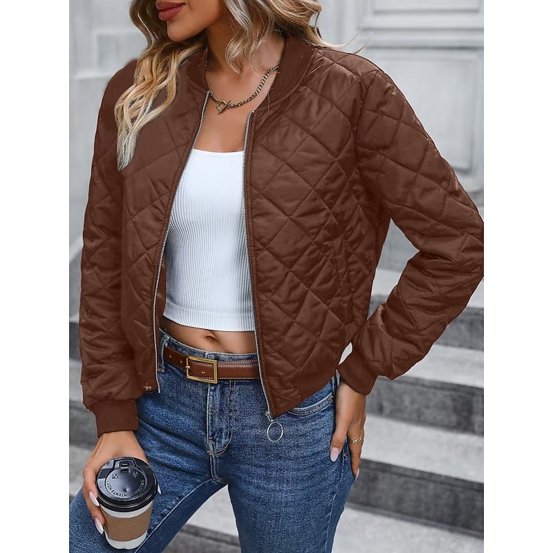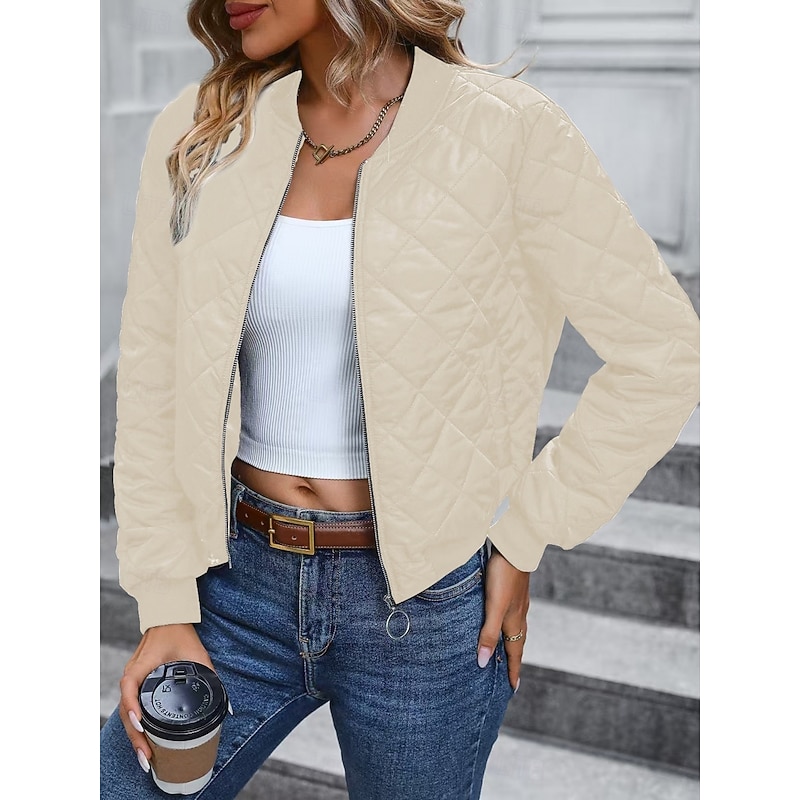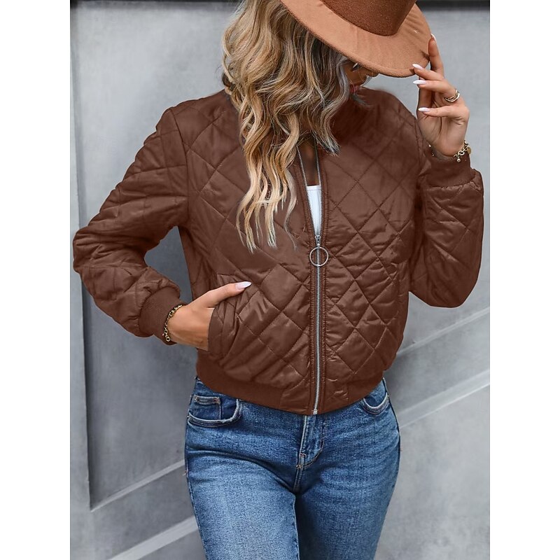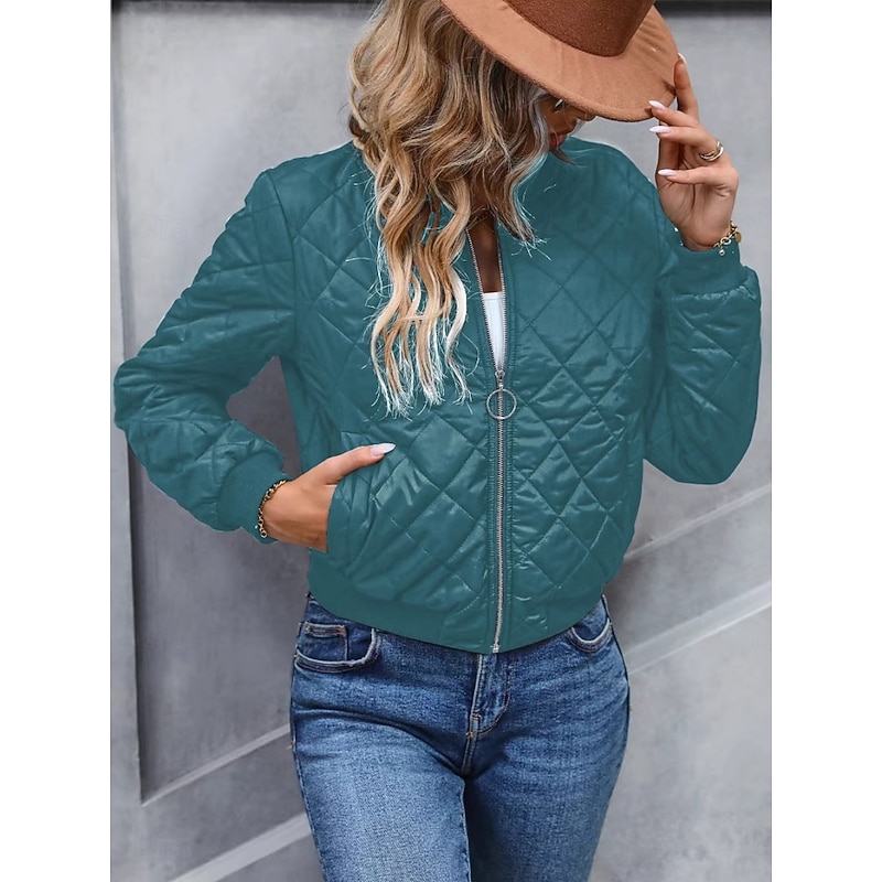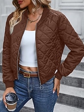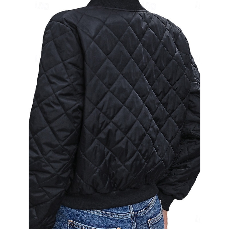 More information about Women's Bomber Jacket Casual Jacket Comfortable Breathable Zipper Pocket Casual Plain Vacation Street Casual Daily Wear Zipper Short Stand Collar Regular Fit Long Sleeve Outerwear Navy Black Pink