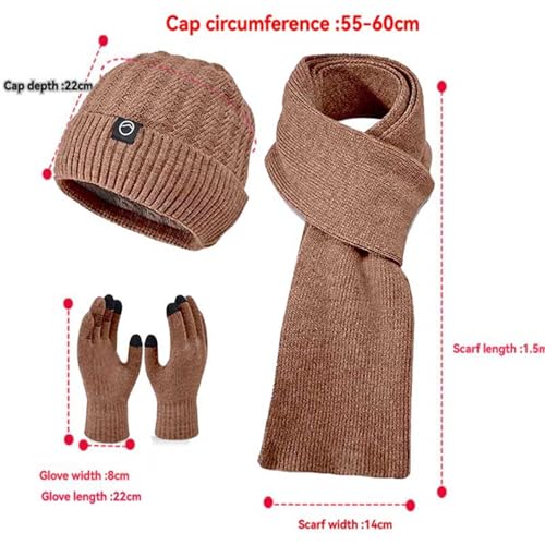 HOT ! Winter Warm Hat Scarf and Touchscreen Gloves Set, Knitted Pom Beanie Hat Neck Warmer Long Scarf Winter Gloves (Khaki, One Size)