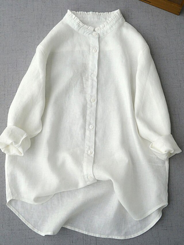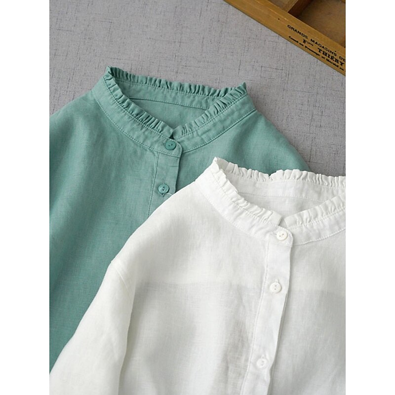 Women's Shirt Linen-Inspired Shirts Button Up Daily Long Sleeve V Neck White Green Spring &  Fall 7
