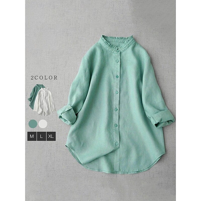More information about Women's Shirt Linen-Inspired Shirts Button Up Daily Long Sleeve V Neck White Green Spring & Fall