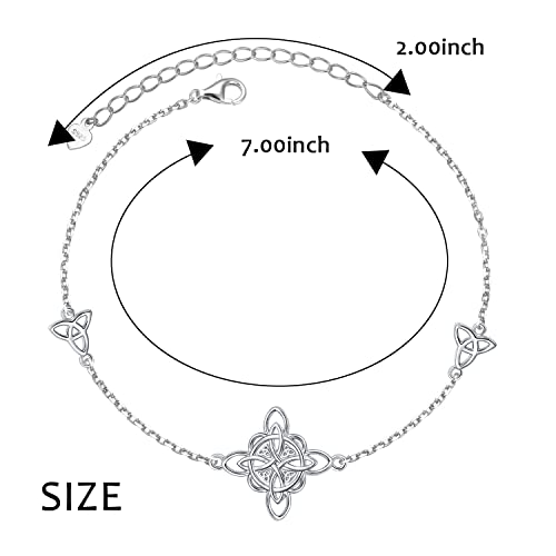 Material: Sterling SilverMetal type: Sterling SilverClasp type: Lobster ClawChain type: Cable ChainGem type: No gemstoneItem type name: Link Charm BraceletsBrief content visible, double tap to read full content. Full content visible, double tap to read brief content. Bundles with this item Previous page up-to-date -24% $40.99 Was: $53.98 Next page See all bundlesFour corner knot celtic design! A symbol of strength and protection.Celtic knots are complete loops that have no start or finish and could be said to represent eternity, means loyalty, faith, friendship or love. Only one thread is used in each design which symbolizes how life and eternity.Center Celtic Charm width: 0.55 inch; 1.5 mm Chain length: 7+2 inches, lobster clasp; Total weight: about 2.59 g.Material: 925 sterling silver, tarnish resistant, nickel-free, lead-free, cadmium-free; plating: rhodium; finish: high polish.Package: 1 x silver cleaning cloth and 1 x small jewelry box; Suitable for any occasion, easy to match any clothes, a lovely adornment you'd like to wear everyday. Perfect for everyday use. first-class materials and excellent craftsmanship ensure long-lasting durability.
