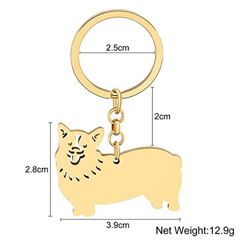 WEVENI Cute Dog Keychain18K Gold Plated Stainless Steel Key Chain Ring Accessories Charms Dog Lovers Gifts for Women Girls (Gold Plated Corgi) 6