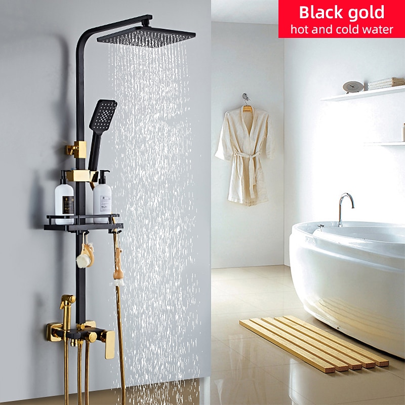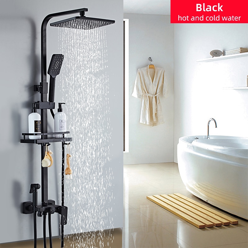 Shower Faucet,Rainfall Shower Head System Mixer valve Set - Handshower Included pullout Rainfall Shower Contemporary Antique Painted Finishes Mount Inside Ceramic Valve Bath Shower 12