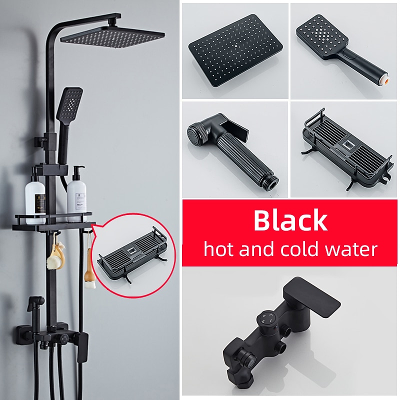 Shower Faucet,Rainfall Shower Head System Mixer valve Set - Handshower Included pullout Rainfall Shower Contemporary Antique Painted Finishes Mount Inside Ceramic Valve Bath Shower 1