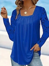 More information about Women's White Elegant Lace Tops Eyelet Blouse Casual Solid Color Lace Long Sleeve Regular Tops Square Neck Daily Romantic Petite Tops Summer Holiday Wear White Pink Blue Spring Fall