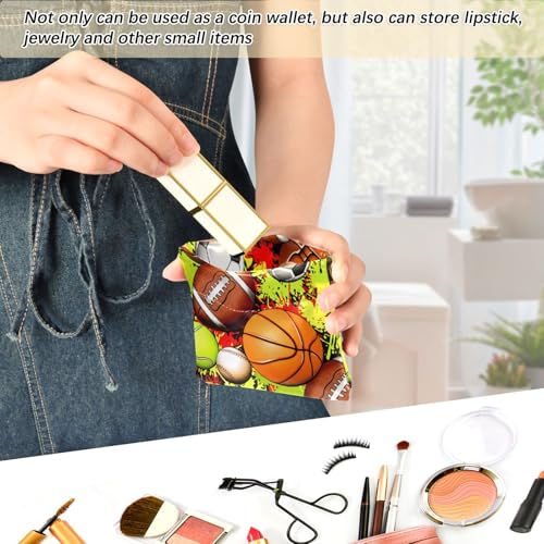 Sports Balls Coin Purse Leather Pouch Change Purse, Squeeze Coin Pouch for Cards, Keys & Lipsticks, Unisex 7