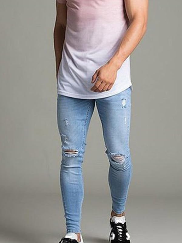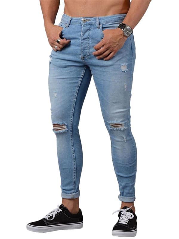 Andongnywell Men's Plus Size Ripped Skinny Jeans Trousers Fashion Casual Loose Destroyed Denim Pants 1