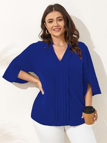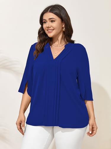 sought-after ! SCOMCHIC Women's Plus Size Blouses 3/4 Sleeve Dressy Tunic Tops Casual Loose V Neck Pleated Shirts