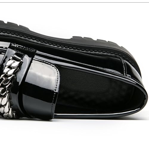Men's Dress Loafers Fashion Patent Leather Chunky Heel Tuxedo Shoes with Chain Decor,Lug Sole Platform Non-Slip Comfort Slip-On Business Loafer Shoes for Work Office 5