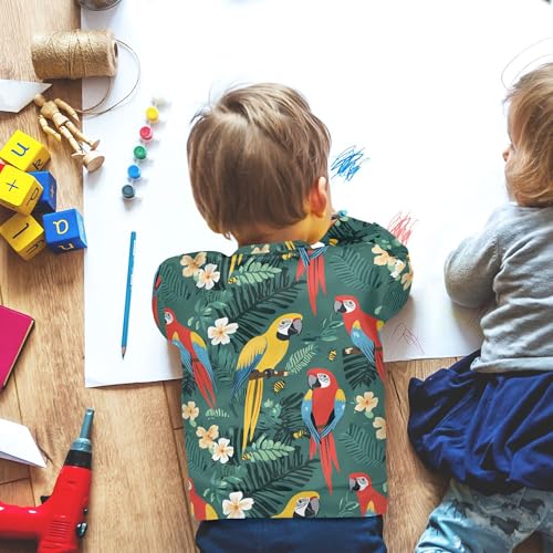 JUNZAN Cute Macaw Green Little Boys Hoodie Sweatshirt Long Sleeve Kids Hoodies Boys Athletic 4T 5