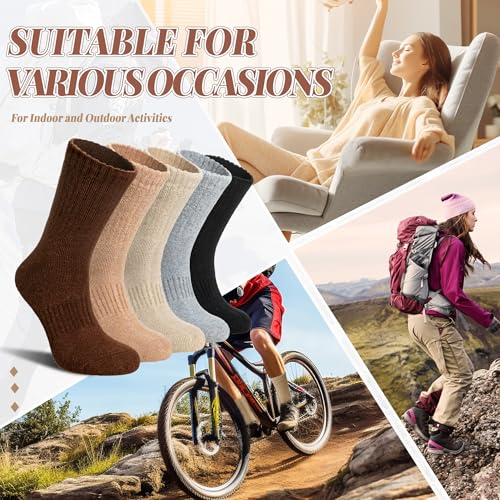 • Designed for all-around use: This 5-pair set of women’s thermal socks is wear them indoors for a soft, warm feel while relaxing, or outdoors to keep feet toasty during chilly activities. they also complement every outfit—from jeans and sweaters to dresses and leggings—ensuring you stay comfortable and fashionable no matter the occasion.