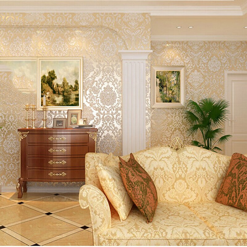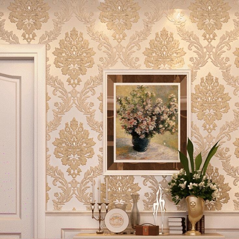 Highlights How Many Pieces Do I Need to Buy? 1. Measure the height and perimeter of your room and calculate the whole size of wallpaper needed. ( Please exclude door, windows etc.) This first measurement will be called Size A. 2. Calculate the size of one piece of this product, called Size B. 3. The number of pieces of wallpaper which you need to buy = A/B+2. And round it up. Note: 1. Depending on the different patterns of the wallpaper,  you will waste some length of wallpaper to match the pattern with 2 wallpaper. So "2" is the minimum buffer. 2. Please buy enough pieces for the whole room, because there might be color differences in different batches. 3. The actual material's color may vary slightly from online colors due to variations in screen color settings.