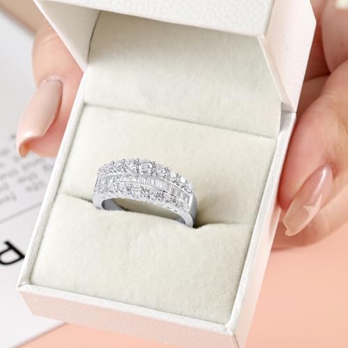 Newshe Jewellery Wide Moissanite Wedding Bands for Women Engagement Rings 925 Sterling Silver Emerald Eternity Ring Round Size 5-10 6