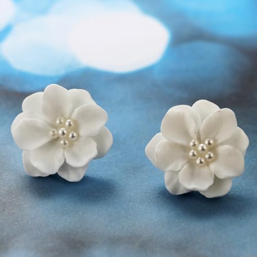 Rrdaily Boho Acrylic Pearl Flower Stud Earrings for Women White Exaggeration Camellia Drop Earrings Sweet Resin Flower Dangle Earrings Jewelry Gift 6