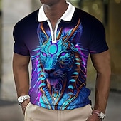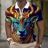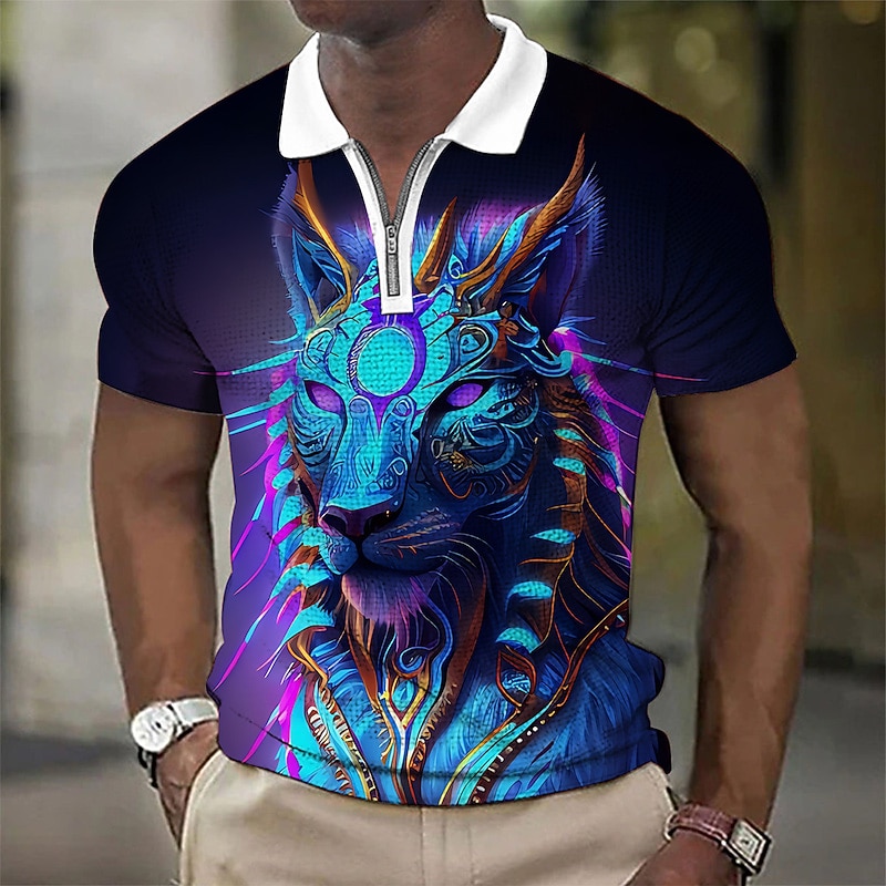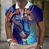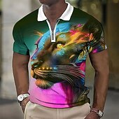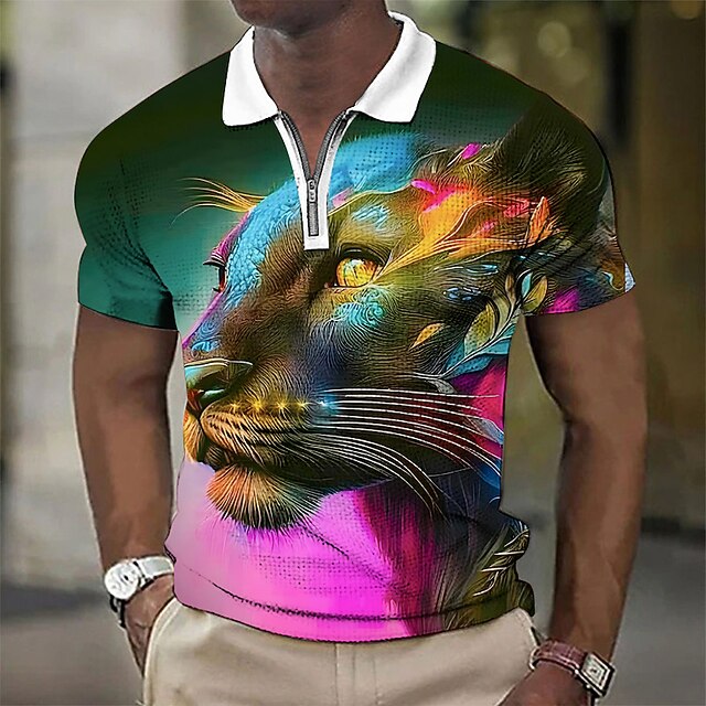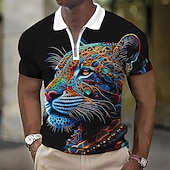 More information about Men's Animal Leopard Graphic Prints Waffle Polo Shirts Polo Shirts Zip Polo Golf Shirt Short Sleeves Shirt Turndown Outdoor Street Black Yellow Blue Purple Green Zipper Print Clothing Apparel Fashion