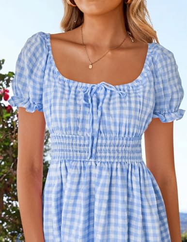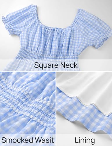 • FEATURE: Cute short puff sleeve, square neck, bow on front, liner in dress, smocked empire waist, tartan or gingham printed, tiered ruffle swing hem, a line dress, bohemian style flowy dresses for women