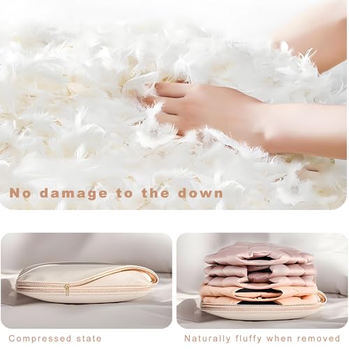 Space Saving Hanging Garment Bag with Self Compression Zipper, Otherwise Travel Clothes Bags for Down Coat Storage, Protector Dust Cover Closet Organizers (Beige, L) 7
