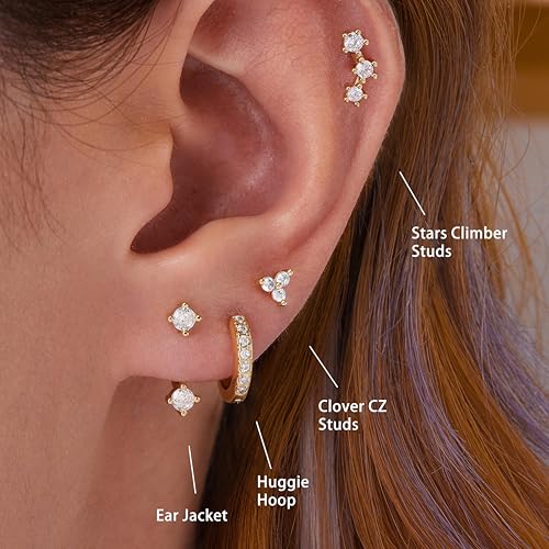 • Versatile Set: This waterproof earrings set includes one pair of mini huggie hoop earrings in 8mm two pair of Zirconia stud earrings and one adjustabl jacket earrings allowing you to mix and match according to your style and occasion. Whether you're going for a casual or formal look, these earrings will complement any outfit.