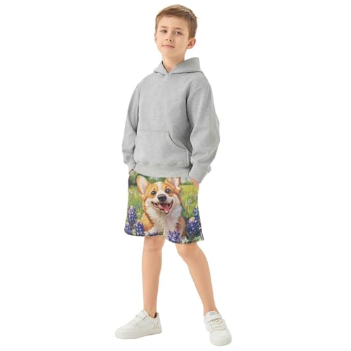 More information about DOMIKING Corgi Lupines Green Kids Shorts Pull-on Boys Shorts with Elastic Waist Casual Athletic Pants for Playwear Summer