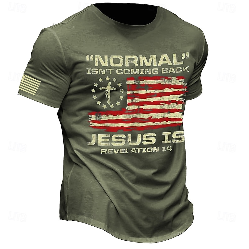 More information about Veterans Day Men's Patriot Patriotic Veteran American US Flag Jesus Christian T shirt Short Sleeve T shirt 3D Print Crew Neck Shirt Retro Vintage Casual Street Casual Bar Blue Green Dark Gray Spring