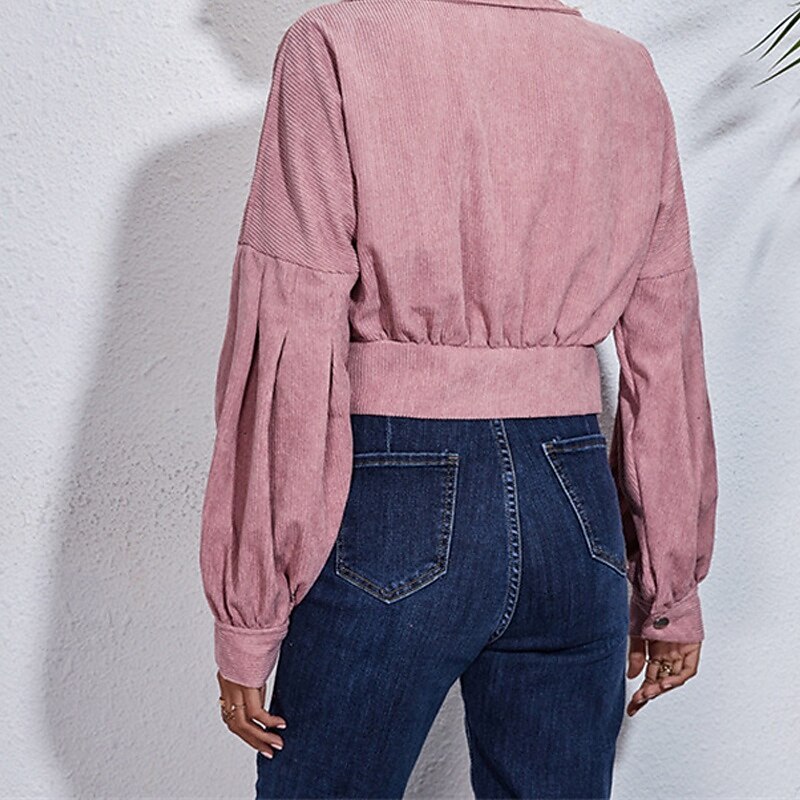 More information about Women's Casual Jacket Warm Comfortable Corduroy Fashion Outdoor Plain Going out Weekend Zipper Regular Turndown Regular Fit Long Sleeve Outerwear Pink Fall Winter