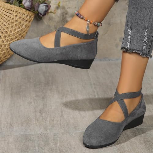 Women's Crisscross Strap Wedge Shoes,Womens Round Toe Ballet Wedge Dress Shoe Elegant Suede Comfy Slip-On Shoes 7