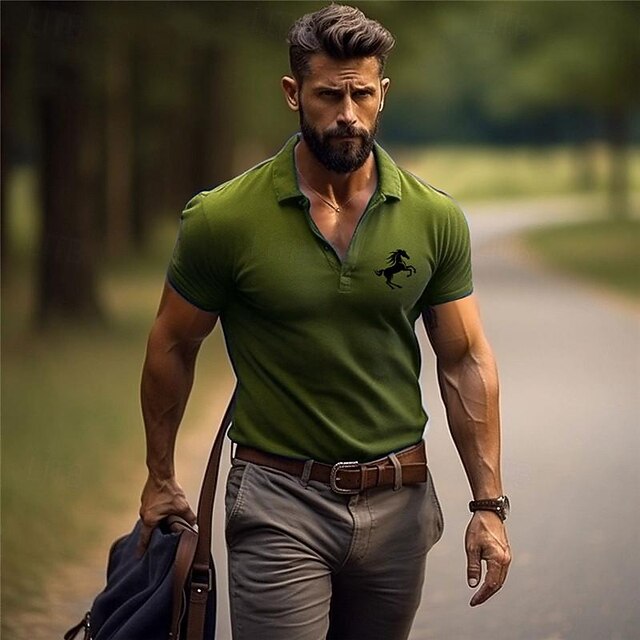 More information about Kentucky Derby Men's Golf Shirt Short Sleeve Polo Shirts Collared Shirts Casual Vacation Wear Party Outfits Buttons 3D Print Summer Black Wine Navy Blue