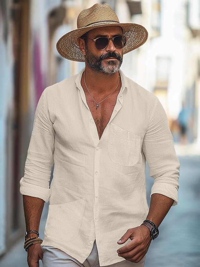 $50.99 - 45% Linen Pocket Men's Linen Shirt Shirt Button Up Shirt Summer Shirt Black White Navy Blue Long Sleeve Plain Lapel Spring & Fall Outdoor Daily Clothing Apparel 2025. Shop for cheap Luxury Linen Shirts online? Buy at lightinthebox.com on sale today!